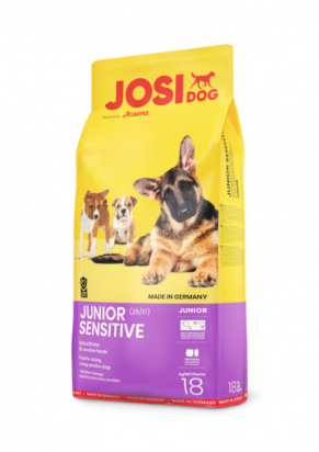 Un raport specific calciu / fosfor adaptat face ca JosiDog Junior Sensitive să fie potrivit pentru toți câinii sensibili de la vârsta de opt săptămâni. Formula fără gluten cu conținut de energie ajustat susține rate de creștere moderate și oase puternice.Compoziție: porumb cu cereale integrale; proteine uscate de pasare; orez; grăsime de pasăre; fibra de sfecla; proteine de pasăre hidrolizate; minerale; rădăcină de cicoare măcinată (sursă naturală de inulină); carne uscată din midia cu buze verzi din Noua Zeelandă. Saci de 18kg